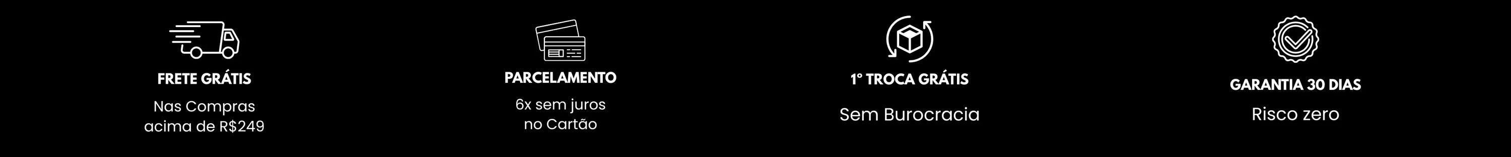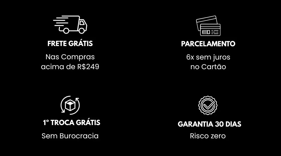 Se por qualquer motivo você não se sentir 100% satisfeito, nós devolvemos 100% do seu dinheiro ou geramos um voucher para troca, sem burocracia. Basta entrar em contato com nosso suporte em até 30 dias após o recebimento.